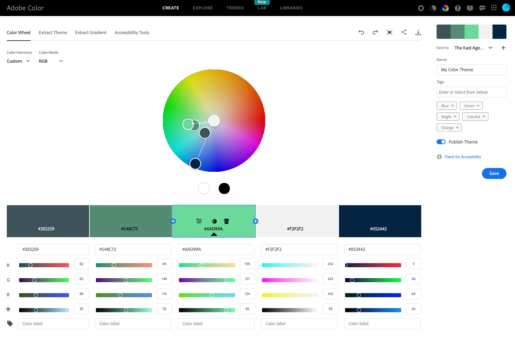 If you want play around with colors and see which ones you can find, you can use Adobe’s Color Color Wheel tool to find ones you like. Tip from me to you: I would have at least 5 colors: Main color, secondary color, a light color, a dark color, and either a complimentary color or another secondary color.