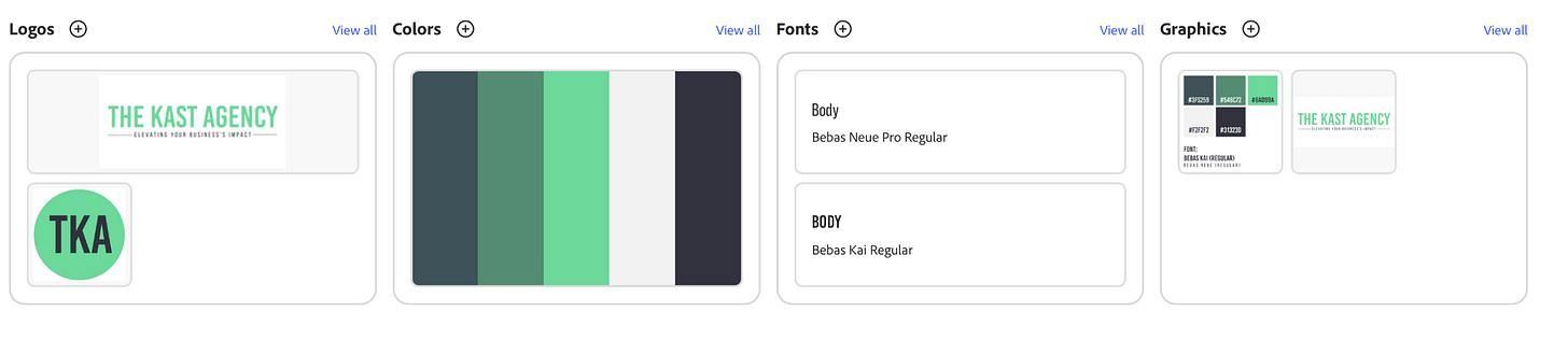 Adobe Express Brand Kits are something I set up first thing for every client that I onboard. It makes it so easy to keep all their colors, logos, fonts, and graphics for every client organized in an easy and accessible way.